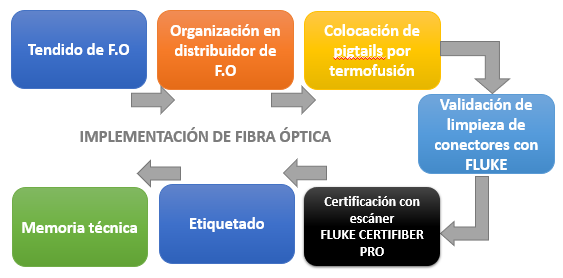 • Interconexión. Por medio de Cables de Fibra Óptica Multimodo o Monomodo, Terminación mecánica con Conectores LC, SC, MT, MT-RJ. Instalación de Bandejas de Fibra Óptica, Organización en Gabinetes y Rack de Comunicación, Conexión de Equipos Activos.